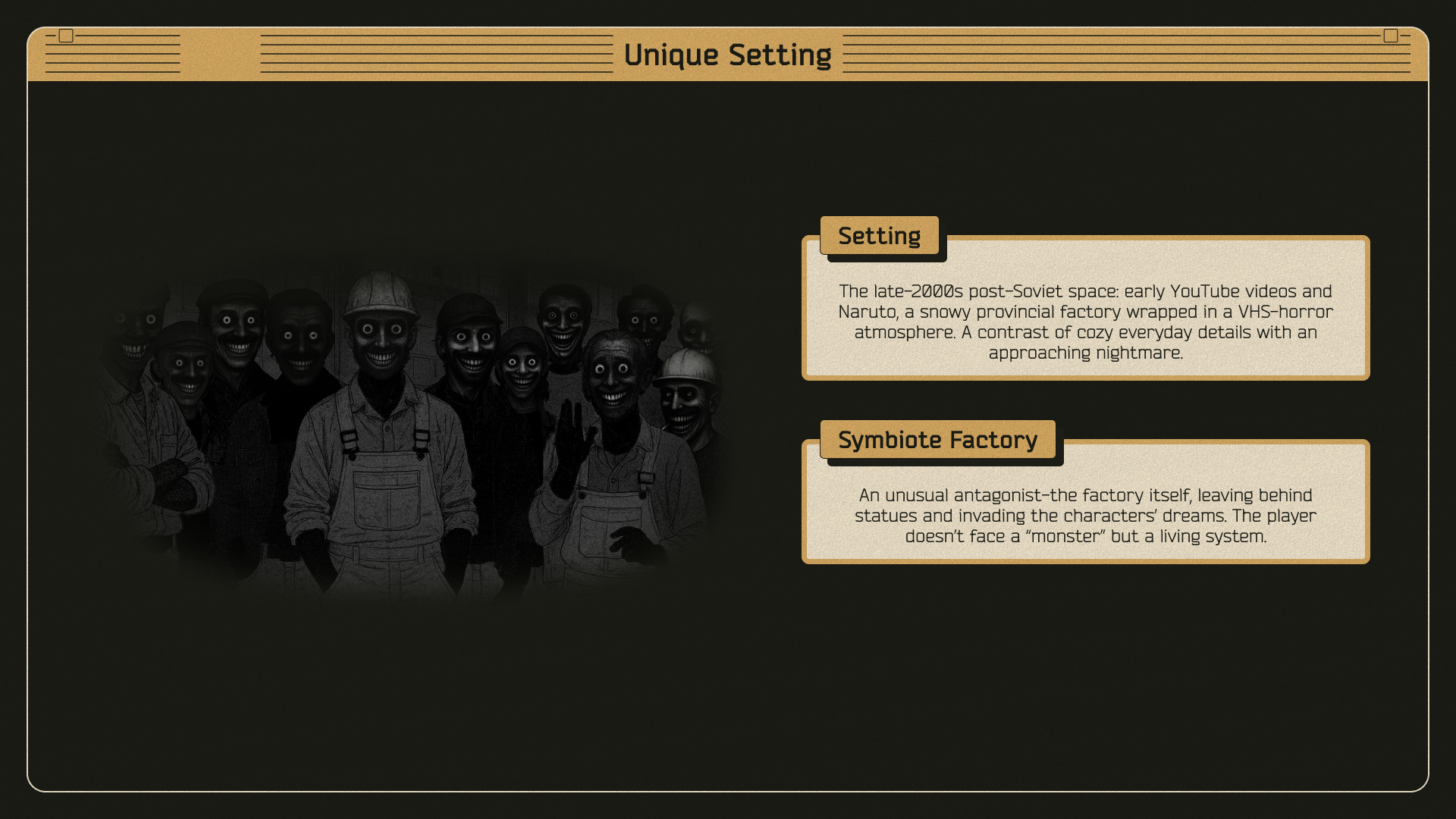 Pitanie is more than survival. It is a descent into a uniquely Eastern European nightmare, where nostalgia for scratched DVDs and early internet culture collides with something ancient and inhuman. Hope fades, trust cracks, and the factory waits to claim you whole.